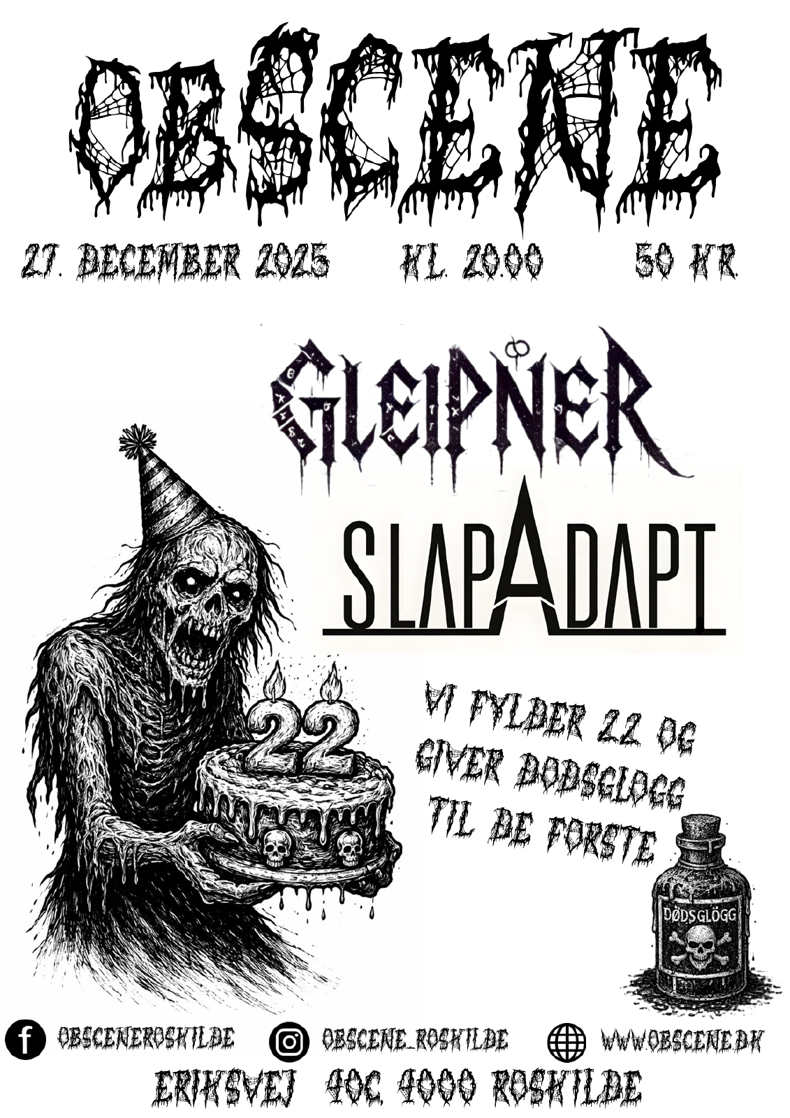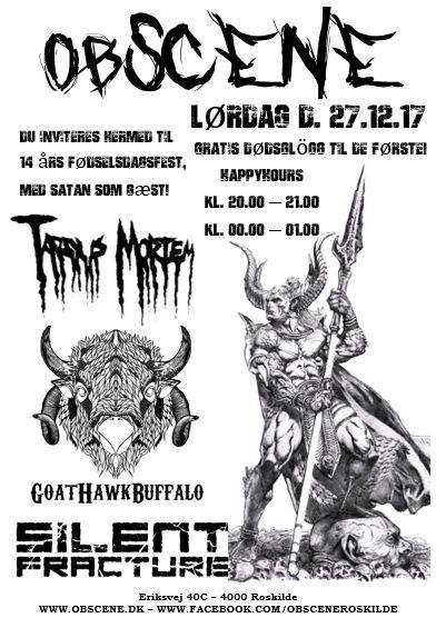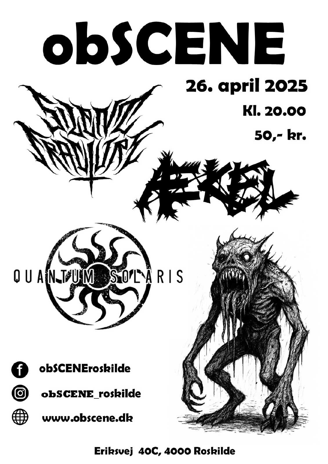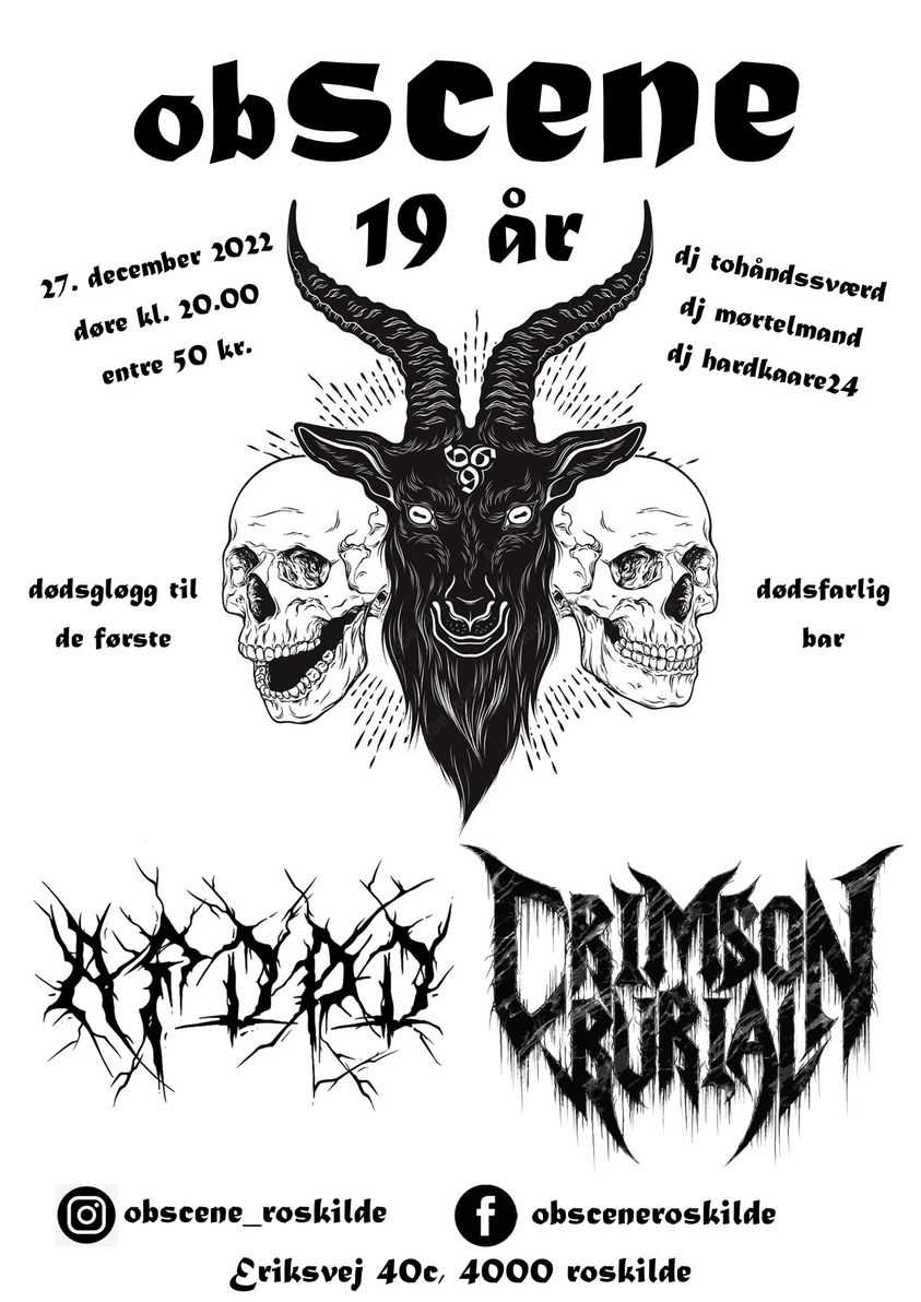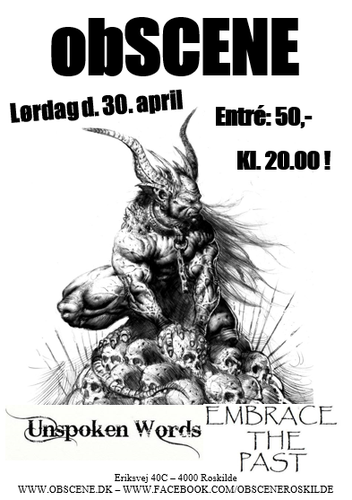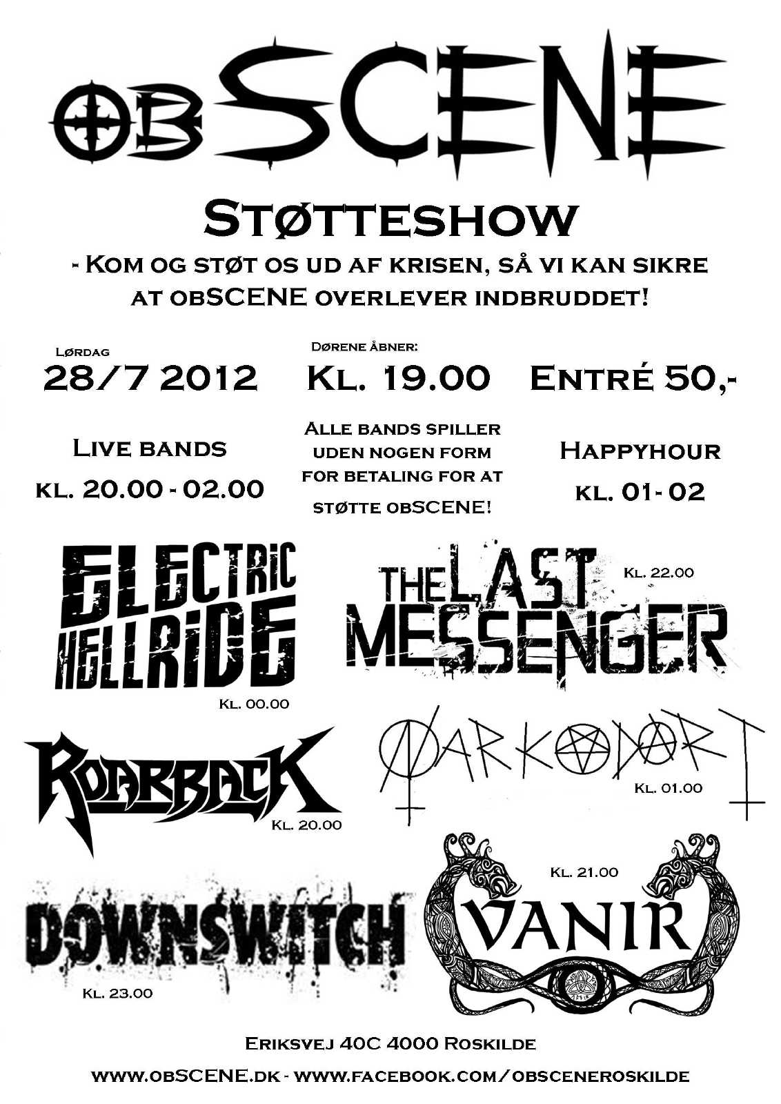 Vi glæder os til, og håber på, at se dig og dine venner og alle dem du kender til en vild aften på obSCENE, hvor alle er med til at støtte op om Danmarks spirende heavy undergrund.